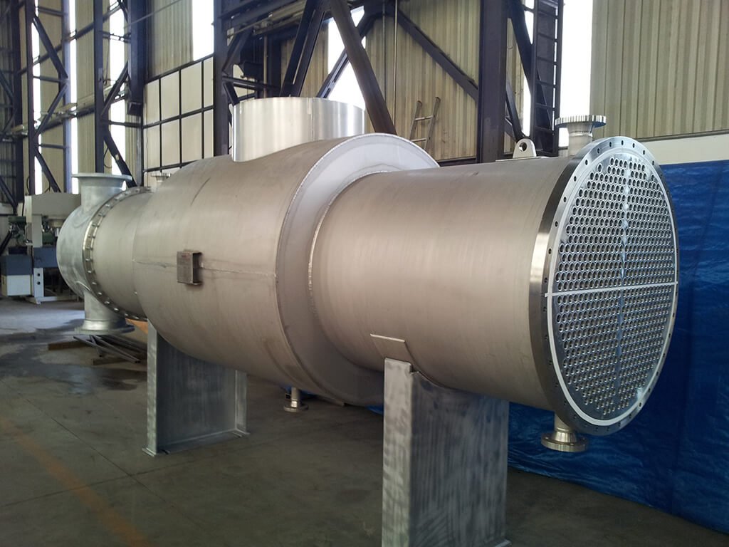 Os trocadores de calor são fabricados em aço carbono ou inox, com estrutura robusta, soldagem qualificada e rigoroso controle dimensional, garantindo resistência mecânica, eficiência térmica e longa vida útil do equipamento.