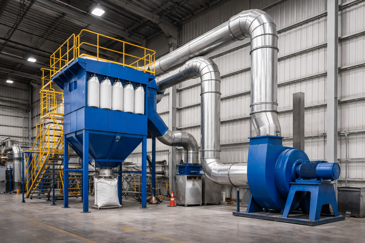 Os serviços incluem inspeção de tubulações de captação, filtros, ventiladores, estruturas metálicas e pontos de exaustão, garantindo que o sistema opere com eficiência e mantenha o controle adequado das partículas geradas nos processos industriais.